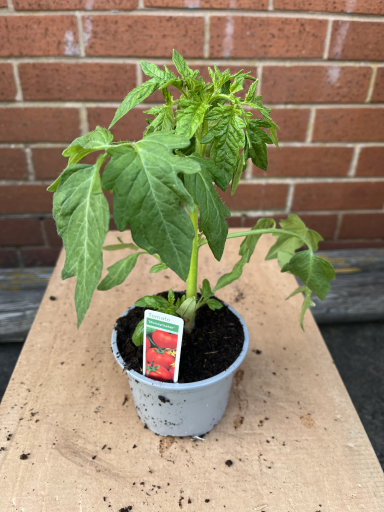 Single Tomato Plant, Moneymaker variety, in a pot.